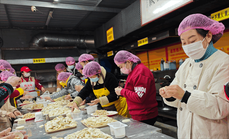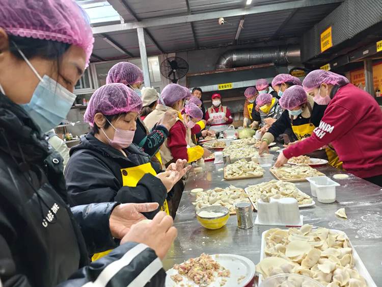 “既来之,则安之”,山东事业部负责人高述红和团队成员立即调整计划,与这些特殊的“志愿者”们一起投入到包饺子的工作中。