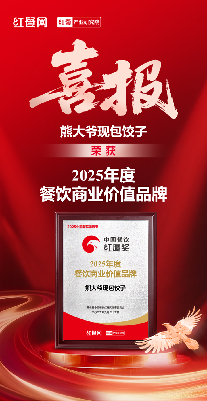近日,手工现包饺子品牌熊大爷在第七届中国餐饮红鹰奖评选中,凭借出色的产品创新力与稳健的商业表现,成功斩获“2025年度餐饮商业价值品牌”称号。这已是熊大爷连续三年获得这一行业权威奖项的认可,彰显了品牌在中式快餐赛道的持续引领地位。