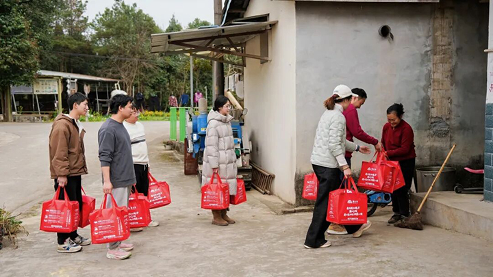 “大爷,新年好!这是孩子们今天亲手包的饺子,给您尝尝,给您拜个年!”当我们将红彤彤的礼盒递到老乡手中时,老人的手有些颤抖,眼角的皱纹里却盛满了笑意。